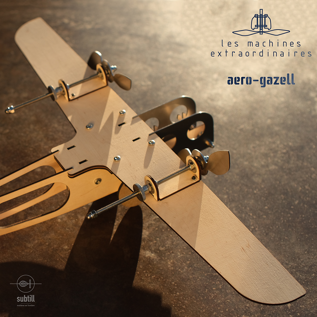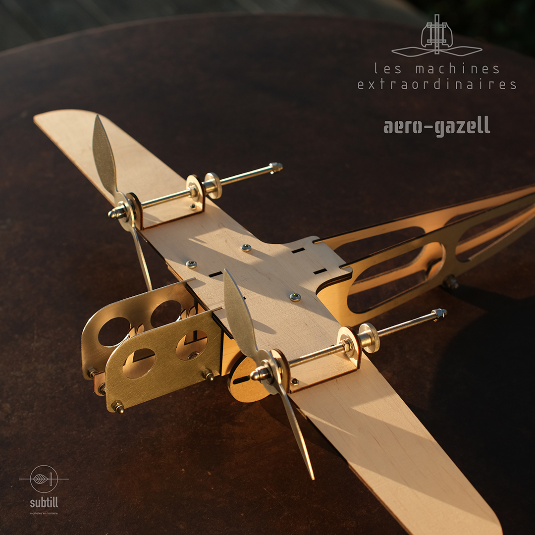 Ses deux moteurs ronronnent à l’unisson, et la gazelle est fin prête, au poste de pilotage. Inspiré des machines des « merveilleux fous volants », cet aéronef prend vie dans l’imaginaire, avec une étonnante nonchalance, suspendu entre ciel et terre. Prenez place en passager, laissez-vous guider… puis saisissez le manche.